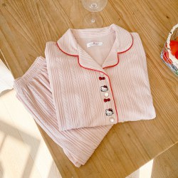 卡通睡衣女款春秋季2025年新款提花棉质甜美减龄少女纯色家居服