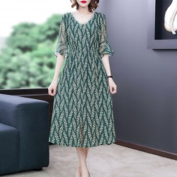 高品质香云纱女欧货夏新款时尚贵气复古花色遮肚显瘦长裙