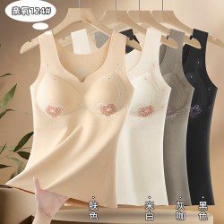 新款无痕保暖背心固定一体杯加绒加厚免穿文胸7A抗菌发热打底内衣