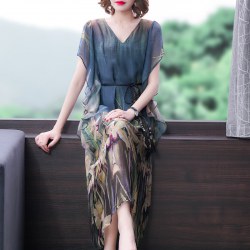 减龄真丝连衣裙夏女法式复古茶歇裙气质桑蚕丝碎花长裙