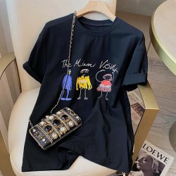 2022新款女装短袖纯色棉夏季印花短袖T恤