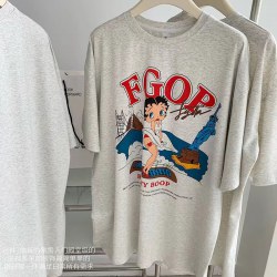 【预售】韩版宽松短袖T恤新款BF风网红印花古着感休闲超火上衣打底衫ins潮