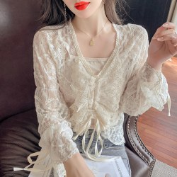 2022年春季新品时尚气质显瘦蕾丝拼接设计感小众长袖衬衫