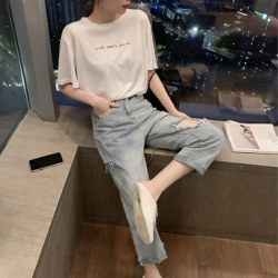新款丝光棉短袖t恤女2022夏装卡通米老鼠刺绣韩版潮i