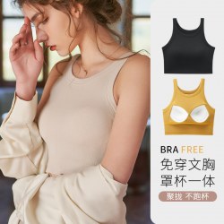 美背背心女带胸垫小吊带夏季薄款一体式裹胸抹胸外穿短款黑色无袖