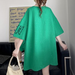 女装两片亮点装饰大字母印花加肥短袖t恤女宽松韩版