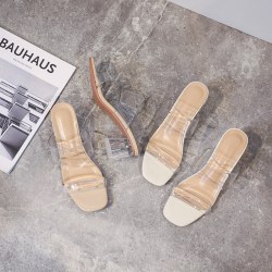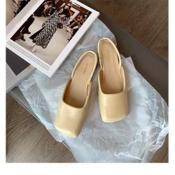 韩版时装半拖鞋女尖头高跟时装凉拖鞋夏季