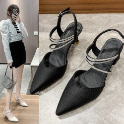 2021春夏新款百搭气质尖头浅口韩版高跟鞋复古包头细跟凉鞋潮女鞋