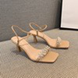 夏季超纤皮凉鞋女法式气质优雅女士方头高跟鞋韩版时尚两穿