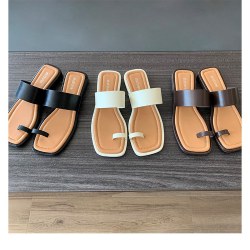 一字带软底粗跟套趾方头百搭外穿低跟凉拖鞋女夏