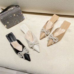 凉拖鞋女2022夏季新款蝴蝶结包头半拖时尚尖头细跟懒人高跟鞋