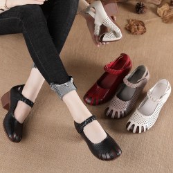 夏季新款头层牛皮女鞋民族风镂空真皮圆头女凉鞋粗跟