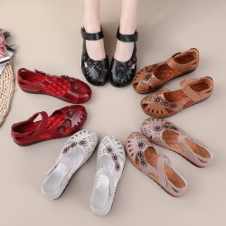 2022夏季新款头层牛皮平底女鞋民族风真皮镂空花朵女凉鞋
