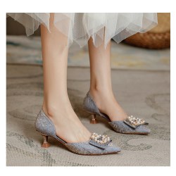 包头中空凉鞋女中跟2022年新款珍珠仙女风时装细跟