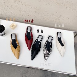 尖头凉拖鞋女鞋包头皱褶懒人穆勒半拖鞋女夏季外穿