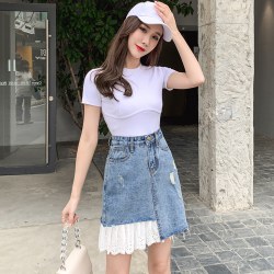 牛仔半身裙女夏季2022新款设计感高腰显瘦百搭短裙a字不规则裙