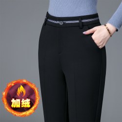 2022新款中年女裤子批发一体绒弹力休闲高腰 黑色加绒长裤女
