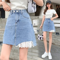 牛仔半身裙女夏季2022新款设计感高腰显瘦百搭短裙a字不规则裙