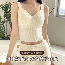 保暖背心带胸垫秋冬季舒适内搭显瘦保暖羊毛打底内衣无袖上衣女