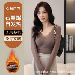 石墨烯自发热无痕贴身保暖长袖背心胸垫女士一体打底内衣免穿文胸