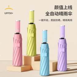 全自动风爆伞12骨黑胶折叠伞双人遮阳晴雨伞防晒太阳伞