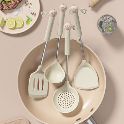卡通猫爪硅胶网漏煎铲汤勺四件套食品级厨师加厚不粘锅耐高温锅铲