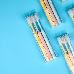 创意糖果色笑脸牙刷三支装带护套成人家用细软毛小头牙刷现货