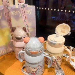 316不锈钢智能儿童保温杯卡通吸管弹跳杯子户外学生有背带水壶