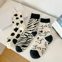 小狗中筒袜子女生ins潮日系可爱春秋长袜韩国冬季插画黑白棉袜