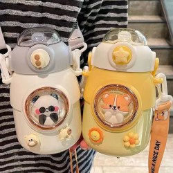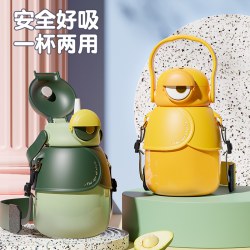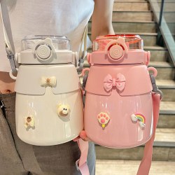 网红大容量双饮大肚水杯高颜值304儿童保温杯背带保温壶水壶