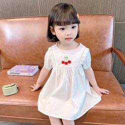 碎花连衣裙2022新款韩版宝宝樱桃刺绣圆领公主裙