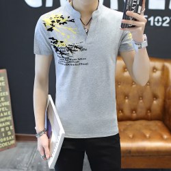 2022夏季男士短袖t恤棉质立领男T恤潮牌韩版大码男装