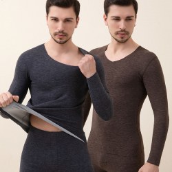 2022新款高档提花棉毛保暖套装男士秋衣秋裤棉毛打底保暖套装