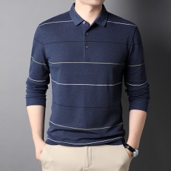 2022新款长袖条纹棉T恤中青年爸爸装宽松休闲翻领POLO衫