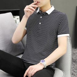 男士短袖条纹上衣翻领T恤夏季新款保罗polo衫