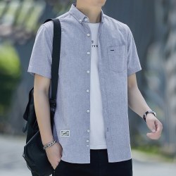 夏季新款纯棉短袖衬衫男士牛津纺休闲全棉衬衣宽松外套
