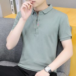 2022夏季中年男士丝 光棉纯色T恤男时尚圆领商务休闲短袖
