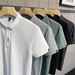 2022夏季男士Polo衫韩版宽松潮流字母刺绣翻领纯色