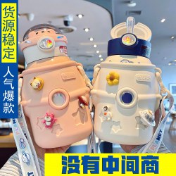 小茶日记保温杯316不锈钢宇航员大容量高颜值吸管大肚杯水杯