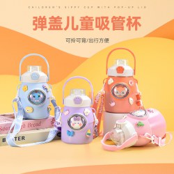 夏季网红ins风可爱保温杯316不锈钢萌趣吸管杯大容量公仔儿童水杯