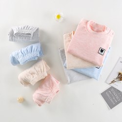 2022新款儿童彩棉内衣套装男童女童纯色睡衣中大童高领秋衣秋裤