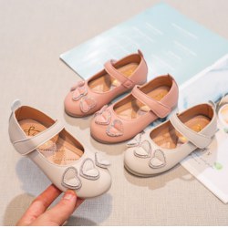 2022秋季新款女童卡通小熊软底单鞋韩版蝴蝶结女孩公主皮鞋现货