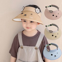 夏季超萌可爱户外遮阳卡通空顶透气双层大檐小童便携防晒软渔夫帽