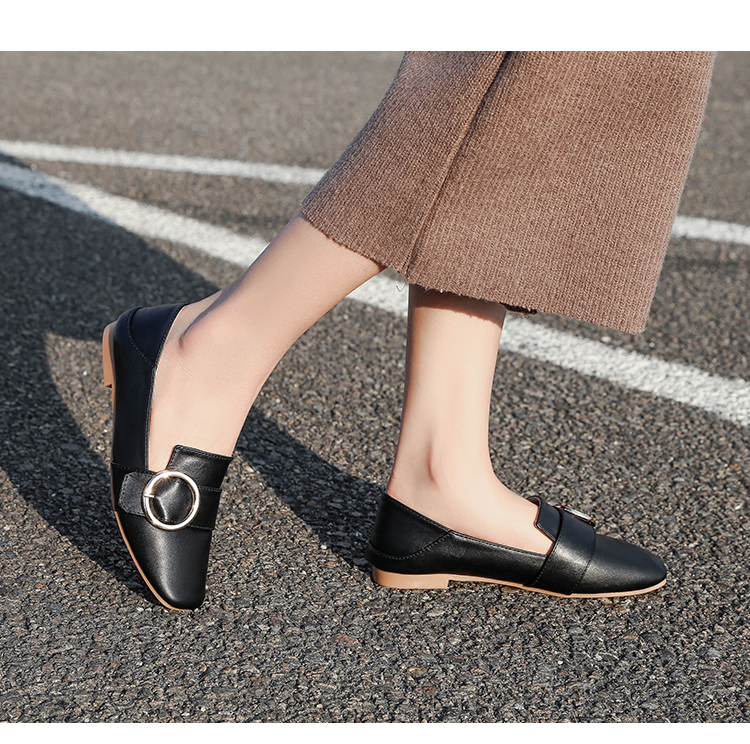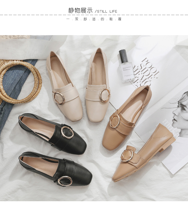 2019春季乐福鞋女英伦风一脚蹬小皮鞋晚晚鞋平底百搭豆豆鞋单鞋女
