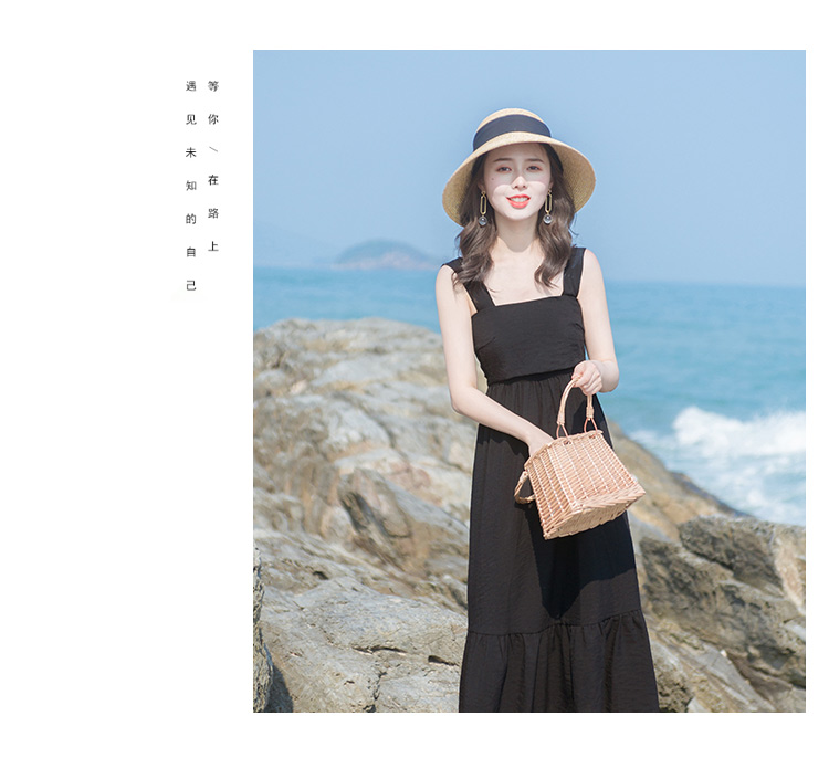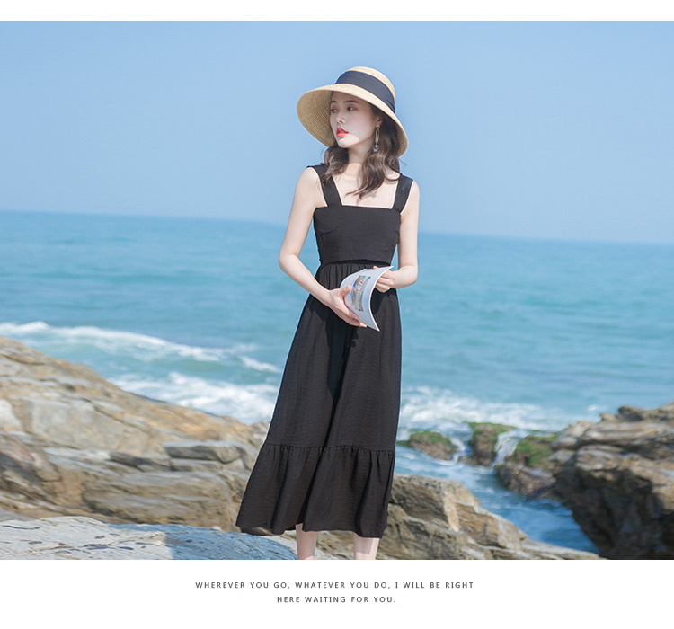 2019流行连衣裙夏季新款女装小黑裙很仙的法国小众吊带连衣裙长裙