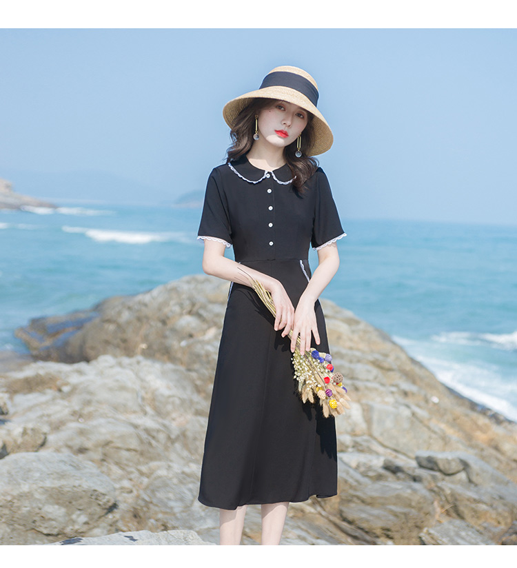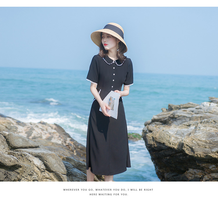 2019夏季新款女装复古赫本小黑裙海边度假娃娃领法国小众连衣裙夏