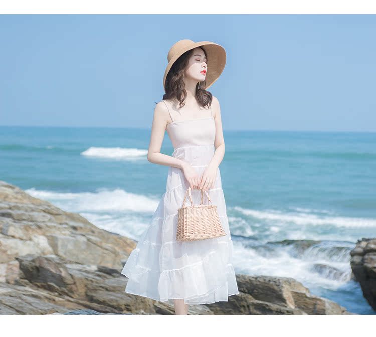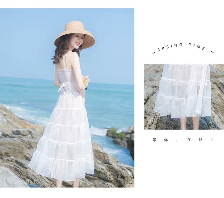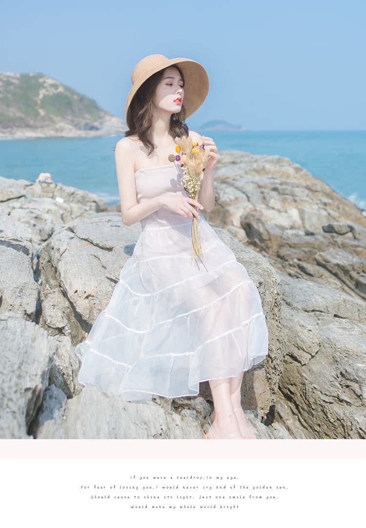 2019流行裙子新款很仙的法国小众吊带网纱连衣裙长裙仙女超仙甜美