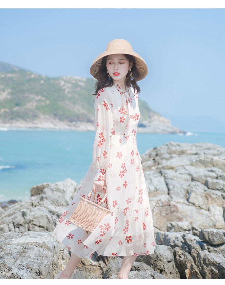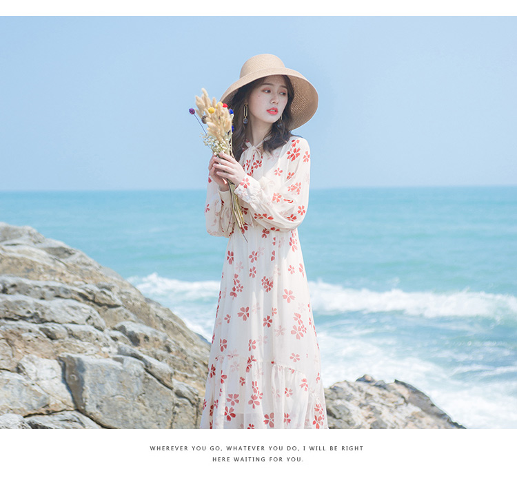 春装2019款女春秋复古很仙的法国小众碎花连衣裙仙女超仙甜美裙子