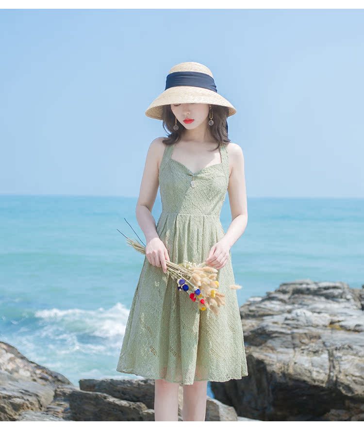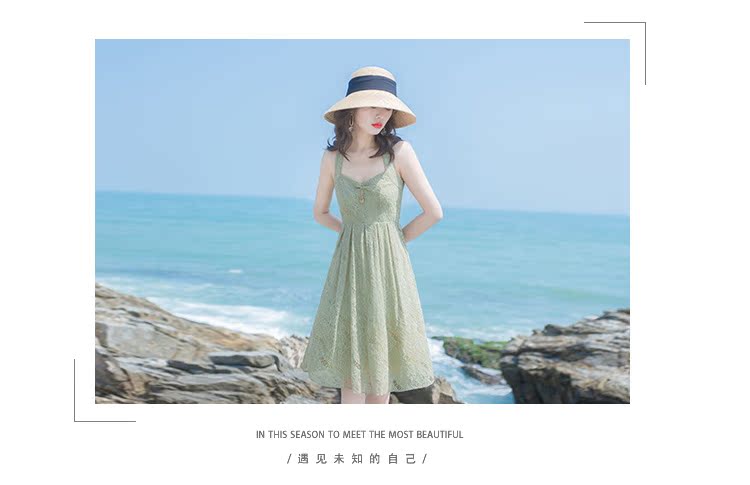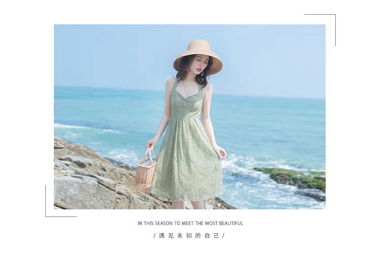 2019夏季新款女装流行裙子修身显瘦性感露背吊带蕾丝连衣裙沙滩裙