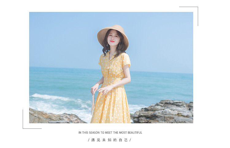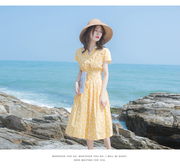 2019夏季新款女装流行裙子收腰小清晰法国小众复古波点连衣裙过膝